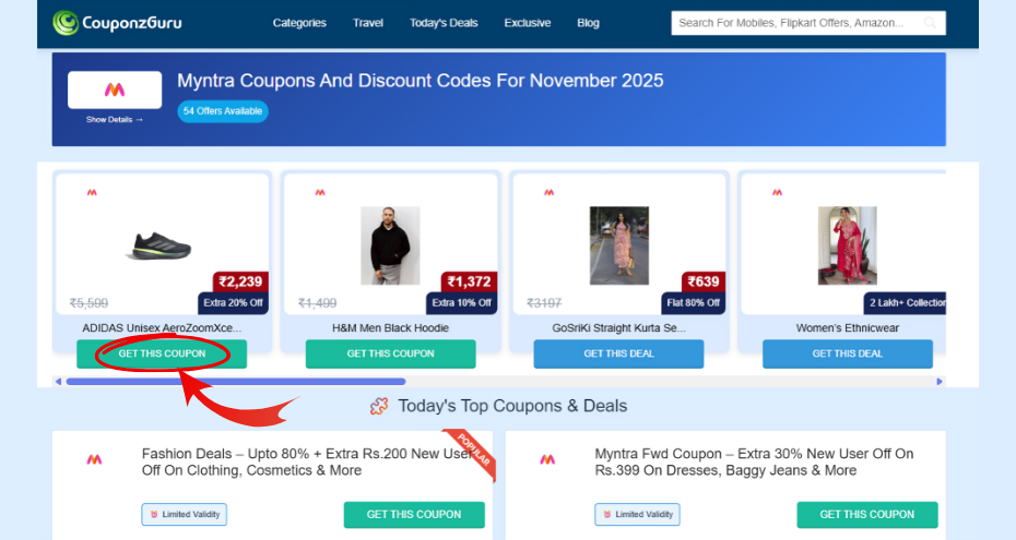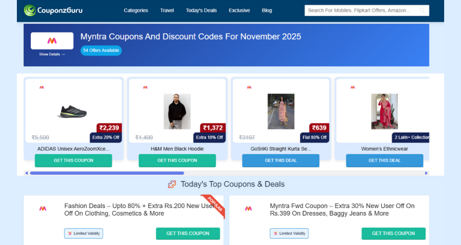 At CouponzGuru, we bring you a curated selection of working coupons, including verified deals from Myntra. Our website helps you to shop smart, apply coupons effortlessly and save maximum.