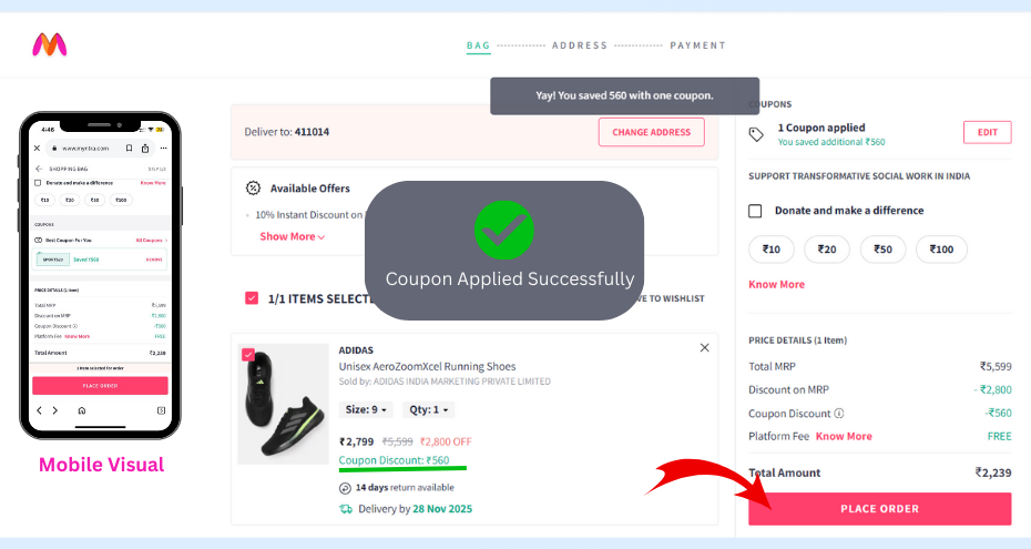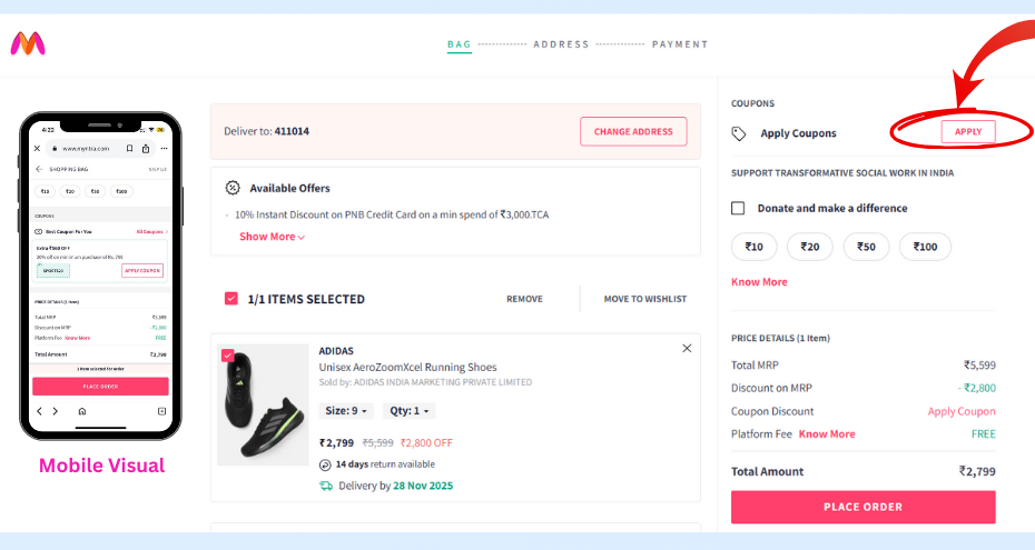 Whether you are a first-time user or looking for festival and seasonal deals. Our Myntra page cover every category including men’s & women’s fashion, footwear, accessories, and beauty products.